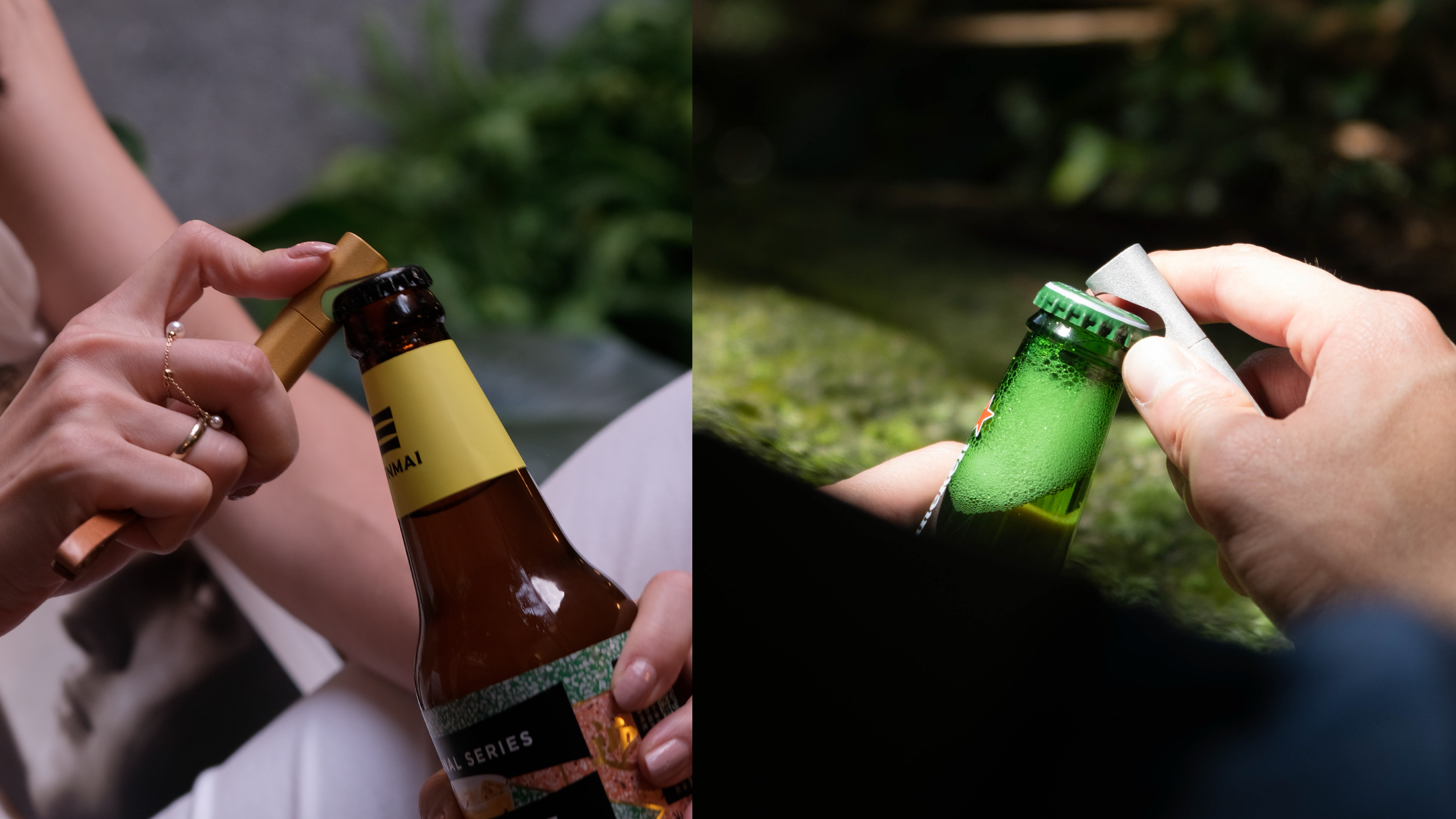 由實心鋁塊CNC精細切削製作,切口角度與位置經過無數次的修改調整為了呈現開瓶啤酒時的爽快超手感。