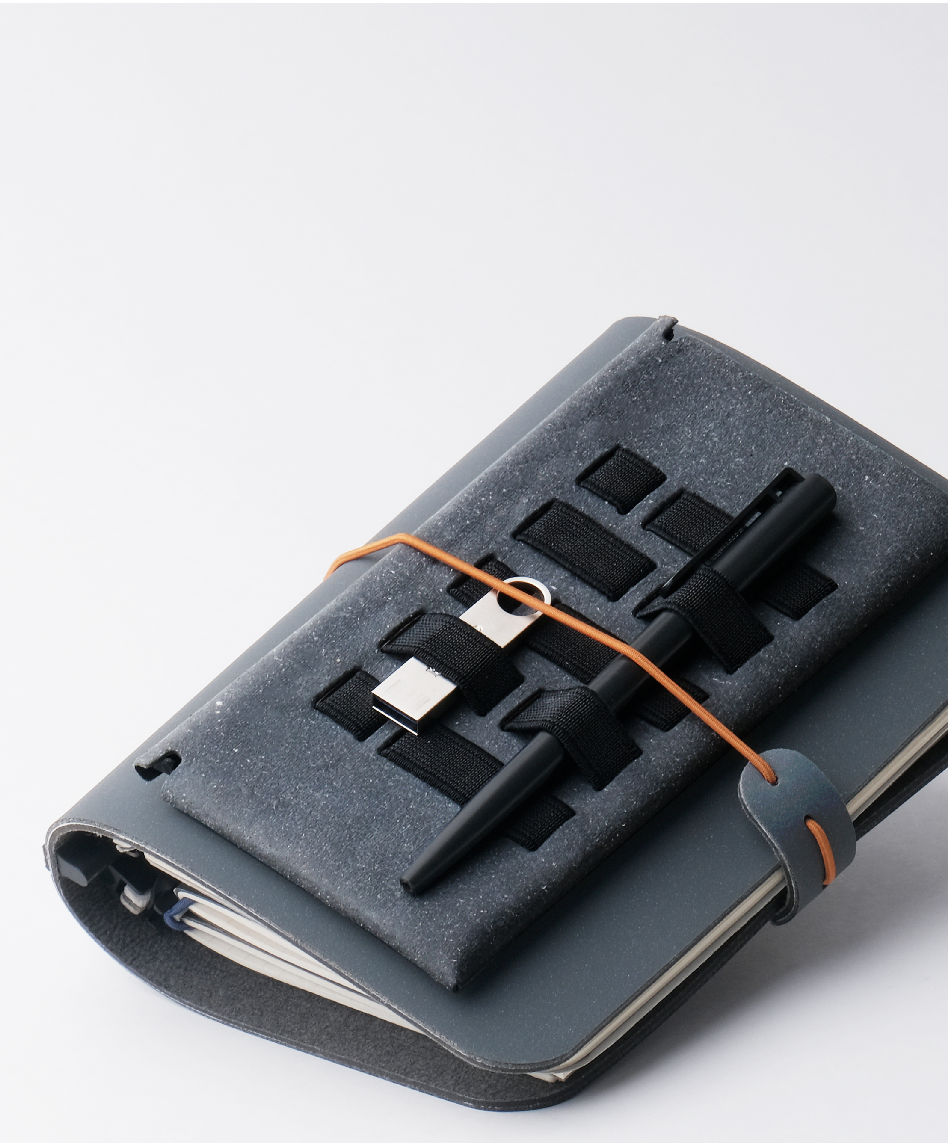 速咔筆記模組配件之一,需與磁吸書夾(16cm)使用,NOTA.DAILY 工具板夾,彈性束帶的材質特性以及皮革表面不同間距的切槽設計,增加板夾放入的物件選擇自由度,將日常使用的物件、文具整齊收納穩固不掉落。
