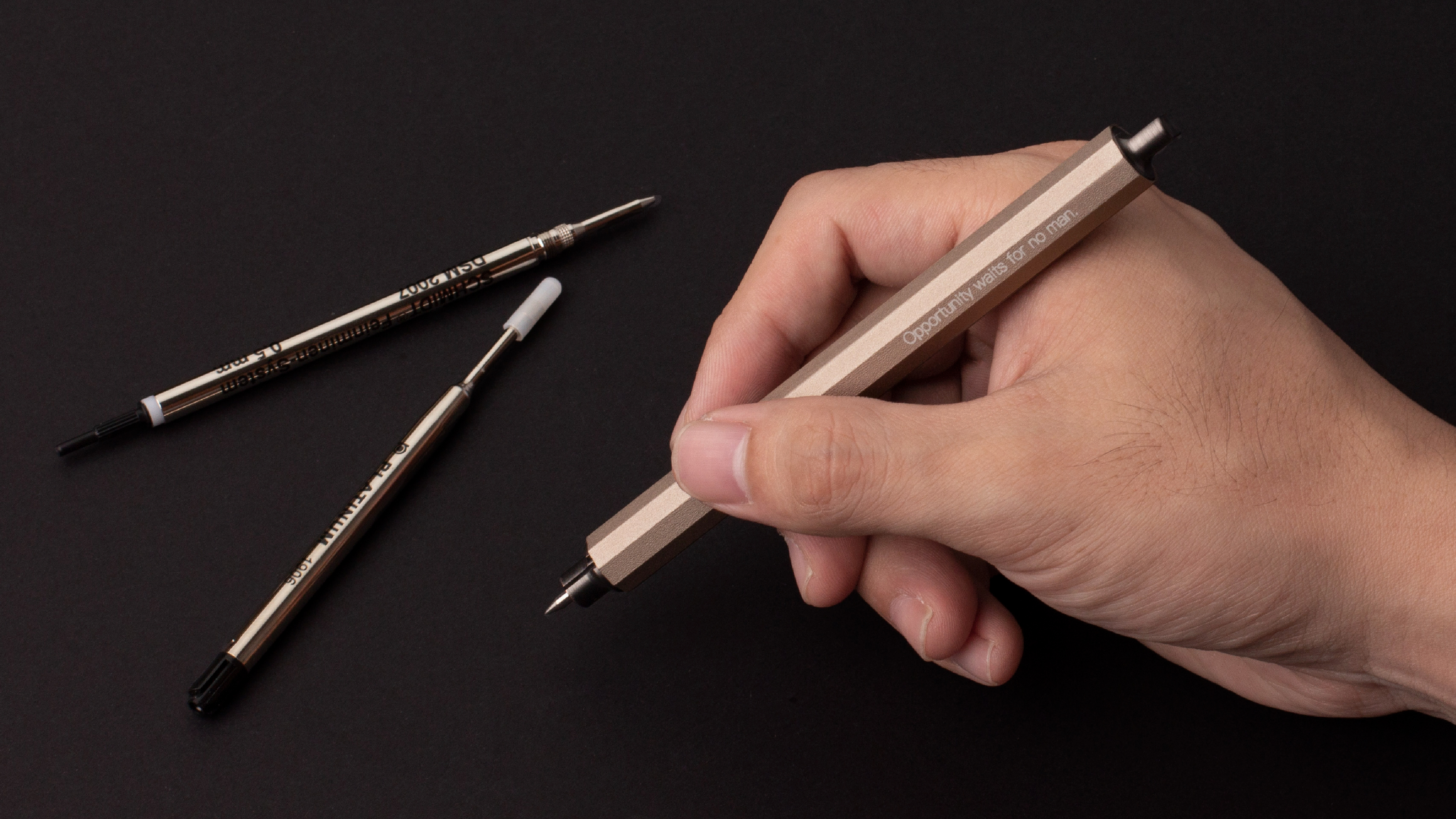 全金屬套|融合黃銅與鐵,打造的全金屬自動鉛筆模組,堅固輕盈的筆身,展現質感細節。