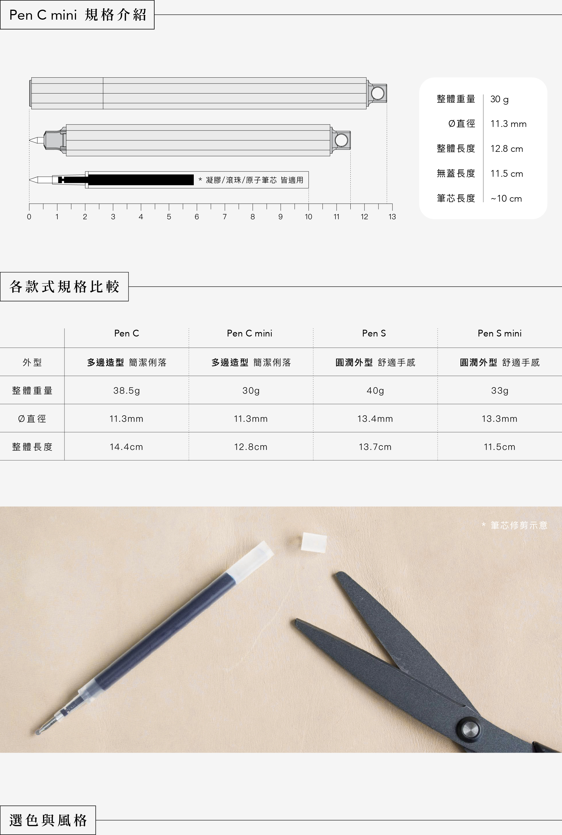 Pen C mini|輕盈尺寸 128mm|為小手掌使用者打造的短版Pen C,使用更輕盈順手。