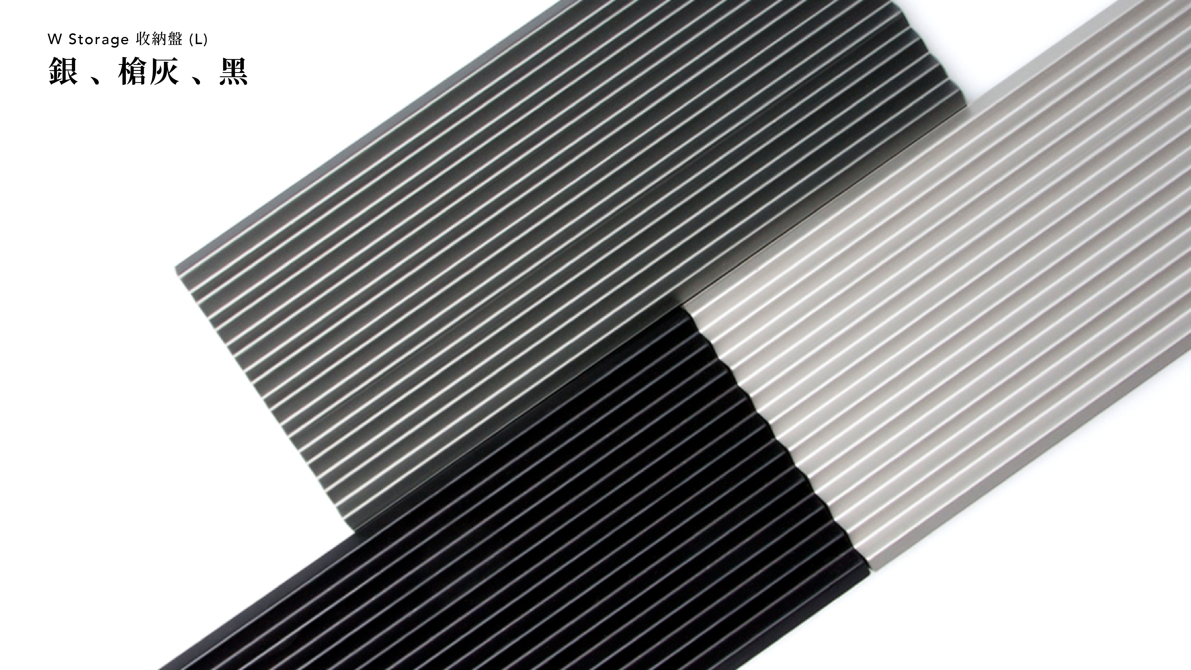 W置物盤擁有五種不同尺寸,還有兩種搭配的配件,包括最大的L、長橢圓的M、平行四邊形的MS、小橢圓的S,以及精巧的紙鎮XS。此外,W系列配套的尺、整線器、手機座、小圓筒、更進一步擴大了您的收納選擇。W系列的設計核心在於獨特的鋁擠成型的W紋路,不僅外觀引人注目,更是其W物件互相吻合固定的關鍵。這意味著可以根據個人喜好,自由搭配形成不同的收納擺飾,打造屬於自己的獨特桌面風格。W系列的獨特功能設計,使系列於2019年榮獲金點設計獎。